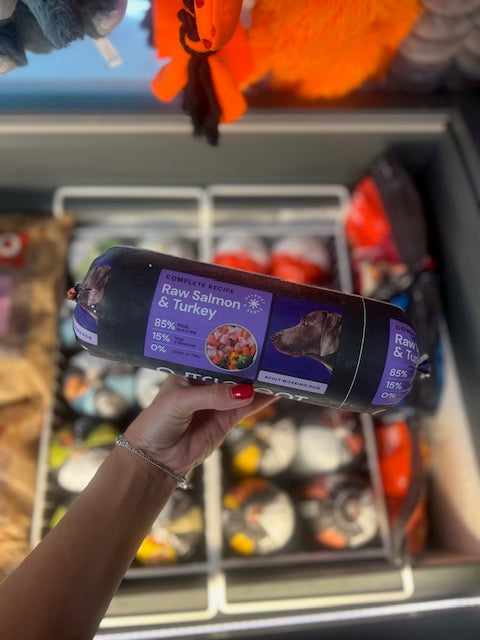 Nutriment's salmon and turkey formula is packed full of protein, essential fatty acids and other nutrients which are vital for a healthy and happy dog. Fish is an important part of any complete, biologically appropriate diet for dogs, and our responsibly sourced salmon is a great option for adding variety to your dog's diet. Formulated by our in-house canine nutritionists, our salmon formula contains carefully selected, biologically appropriate ingredients, which are free from grains, fillers and additives which can disrupt a dog's digestive system. This great-tasting recipe will be thoroughly enjoyed by your dog, and their digestive, skin, coat, heart and brain health will be promoted due to the nutritional profile of the natural ingredients.