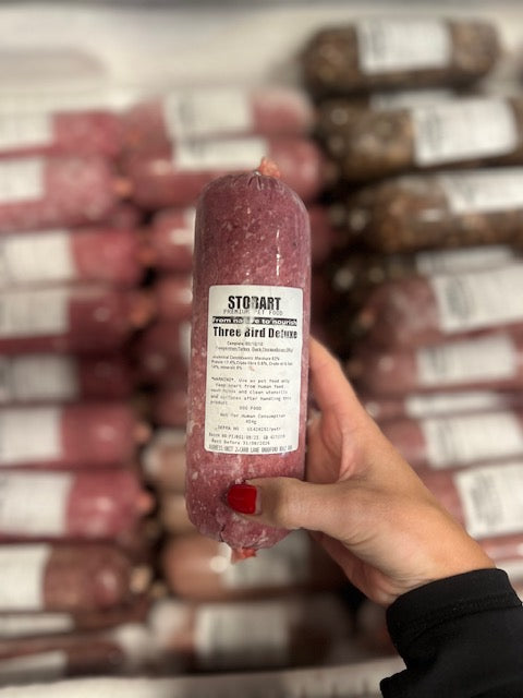 Three Bird Deluxe Mince. Premium pet food. 454g frozen.